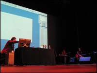 Range Murata était assisté par Marie-Saskia Raynal à la traduction et par Meko à l'animation pour présenter son utilisation de la tablette graphique. |